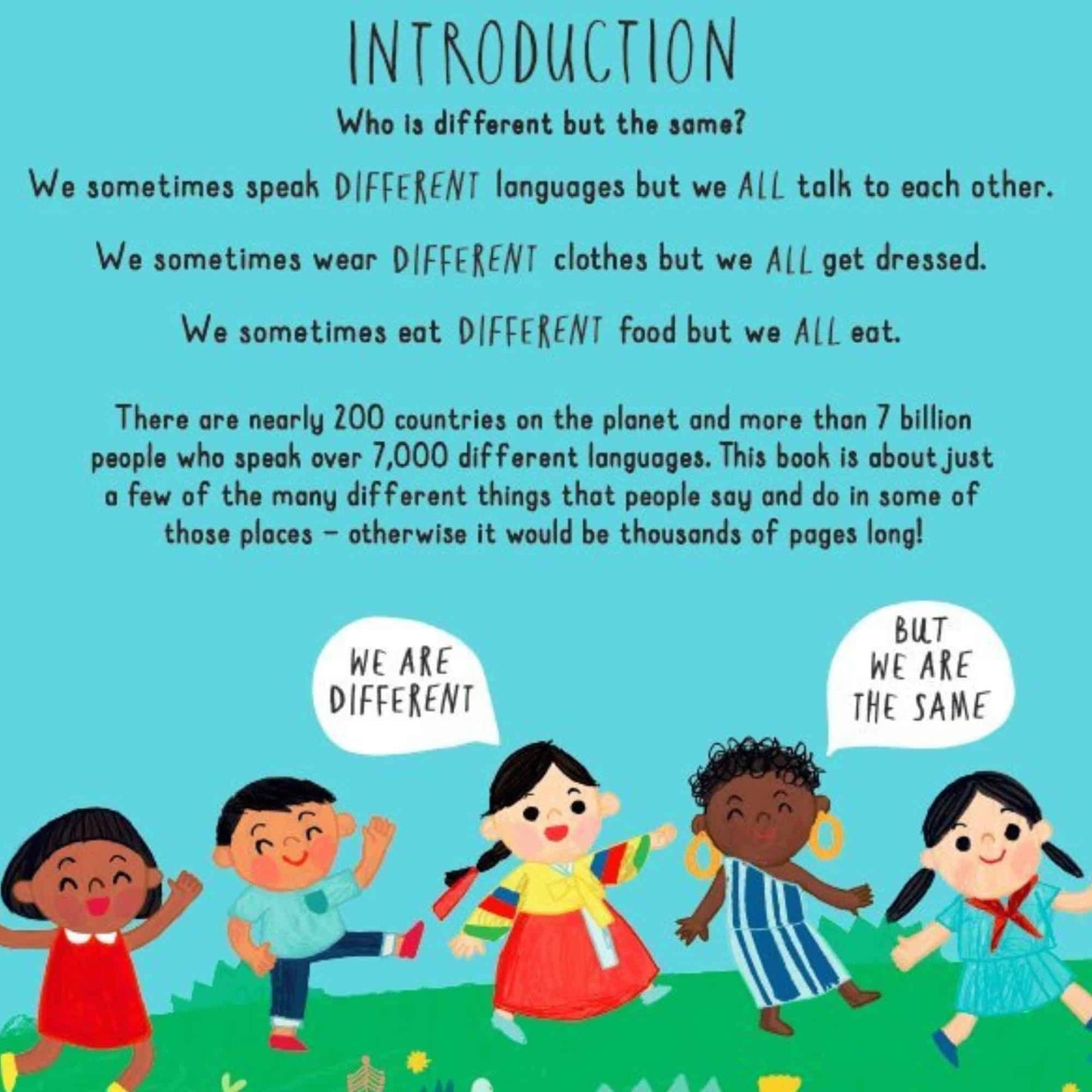 Children all over the world are very different, but they also have much in common. In this beautifully illustrated book, young children can learn all about what people in other countries eat, wear and play, and how they speak and celebrate. From breakfasts to birthdays, cakes to clothes, and hiccups to hellos, there are so many ways to say and do things – but everyone shares a love of family, friends, food and fun. This delightful book teaches us that despite different languages, customs and traditions, it really is a small world, after all.