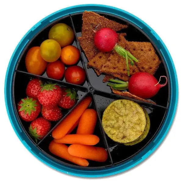 BentoDISC™, drehbarer Snackbehälter für Kinder - Blau, Limette und Lila