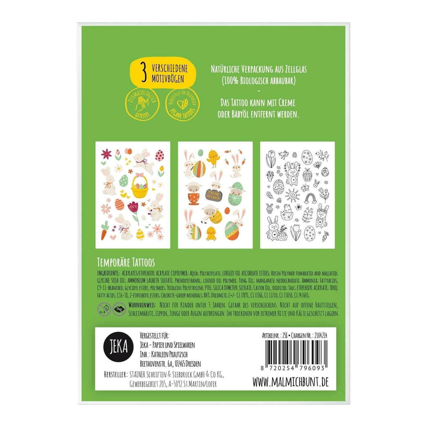 Unsere temporären Kindertattoos machen eure Ostertage zu einem ganz besonderen Fest! Die vielen bunten Oster-Motive sind ein echter Hingucker zum Osterfest mit der Familie und Freunden und beim Eier-Suchen!