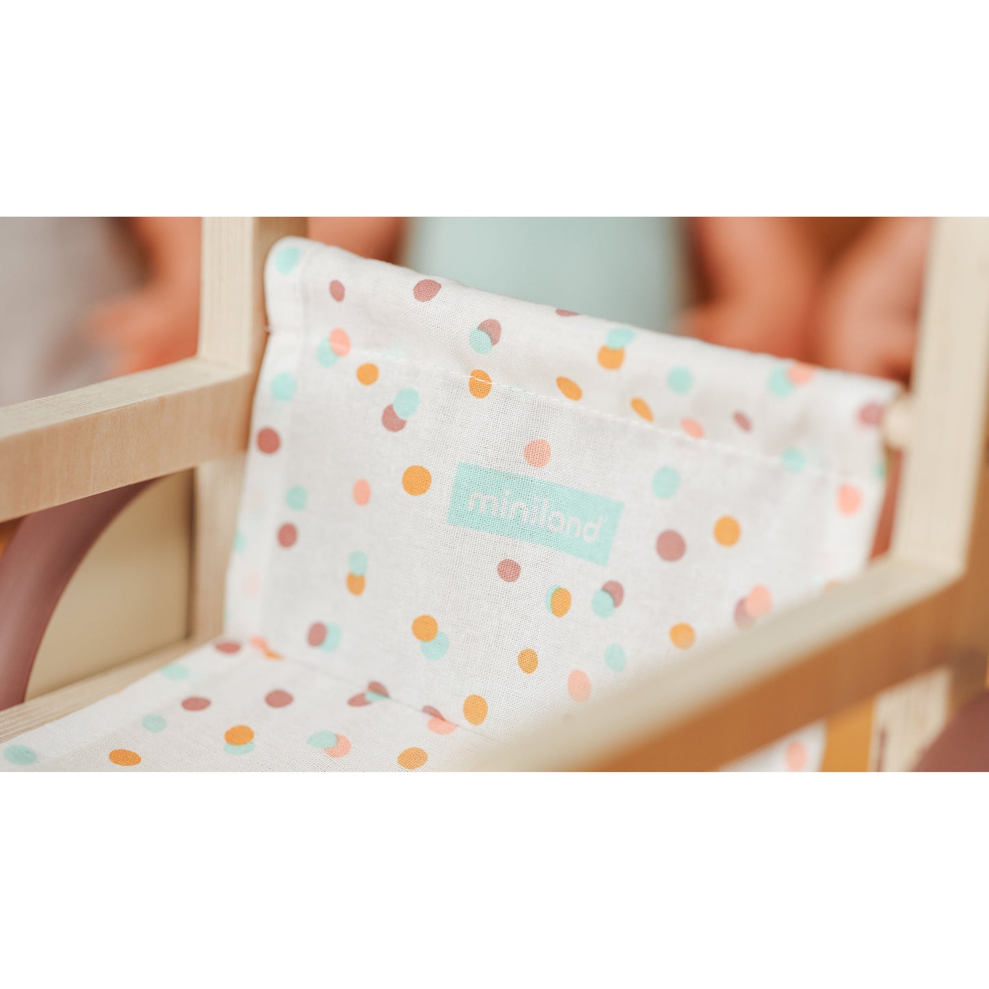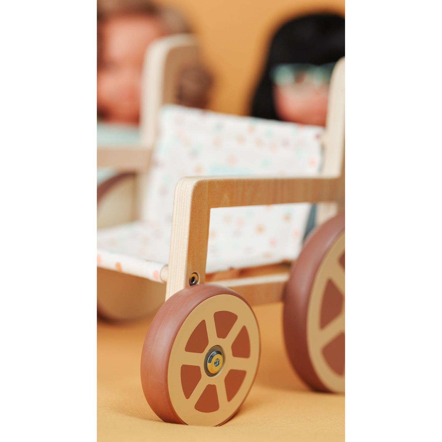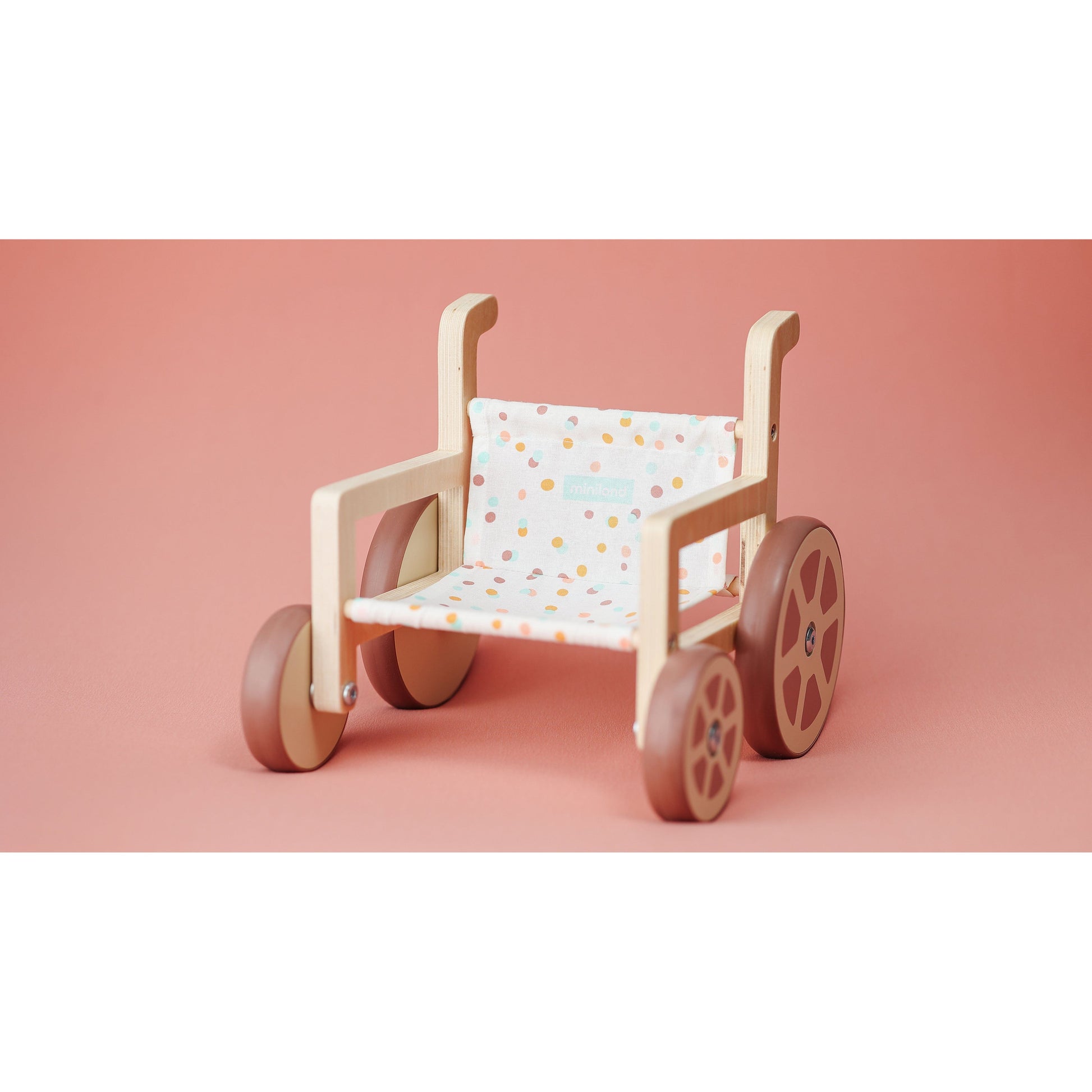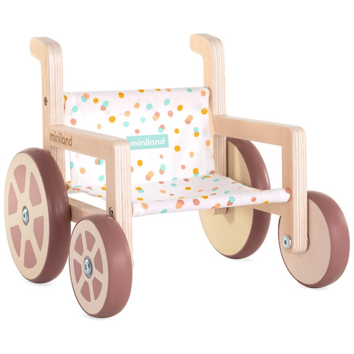 Der Miniland Rollstuhl für Puppen ist aus FSC™-zertifiziertem Holz aus nachhaltiger Forstwirtschaft hergestellt und hat einen lustigen, bunten Aufdruck. Außerdem sind die Räder mit einer Gummibeschichtung versehen, die die Griffigkeit verbessert und es ermöglicht, mit dem Rollstuhl zu spielen, ohne Oberflächen zu beschädigen. Bereit zum Rollen!