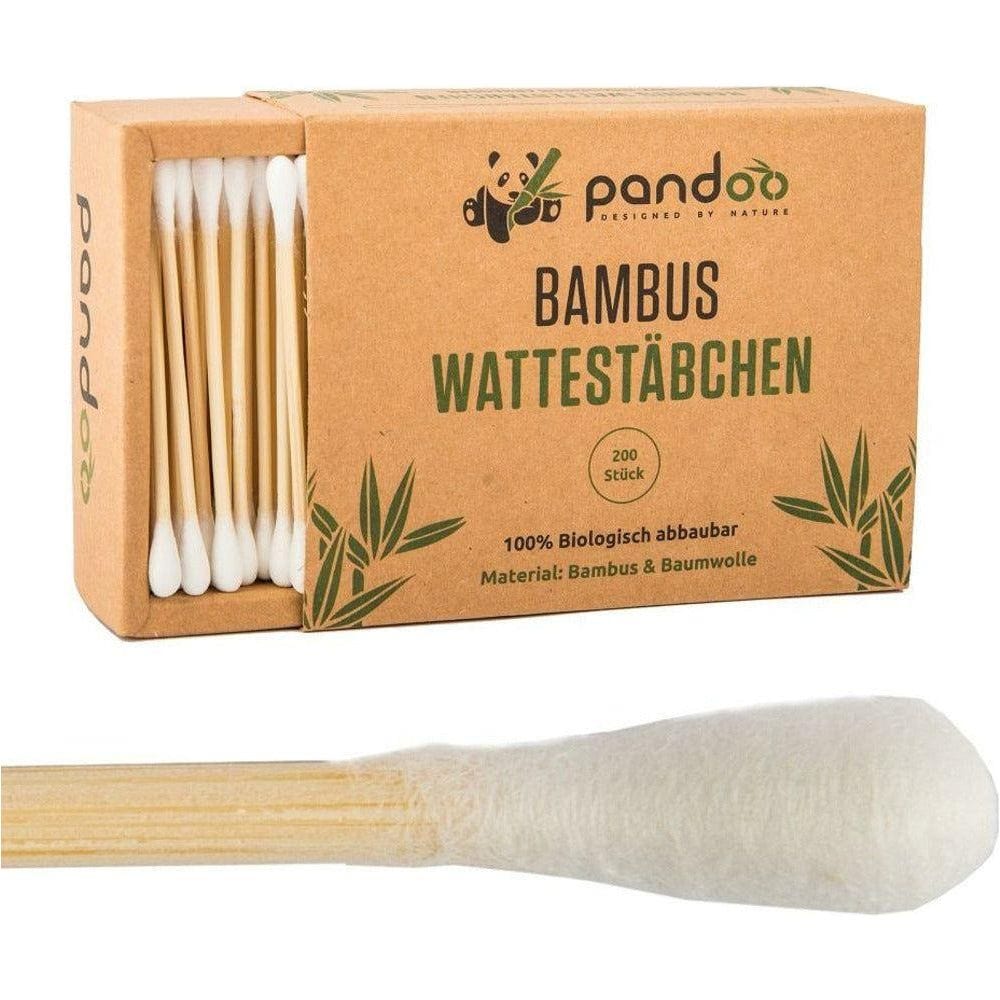 Die pandoo Wattestäbchen sind die perfekte Alternative zu Plastik- und Papier-Wattestäbchen. Mit ihrem Bambus-Stiel und den weichen Bio-Baumwollköpfen sind sie 100% biologisch abbaubar.