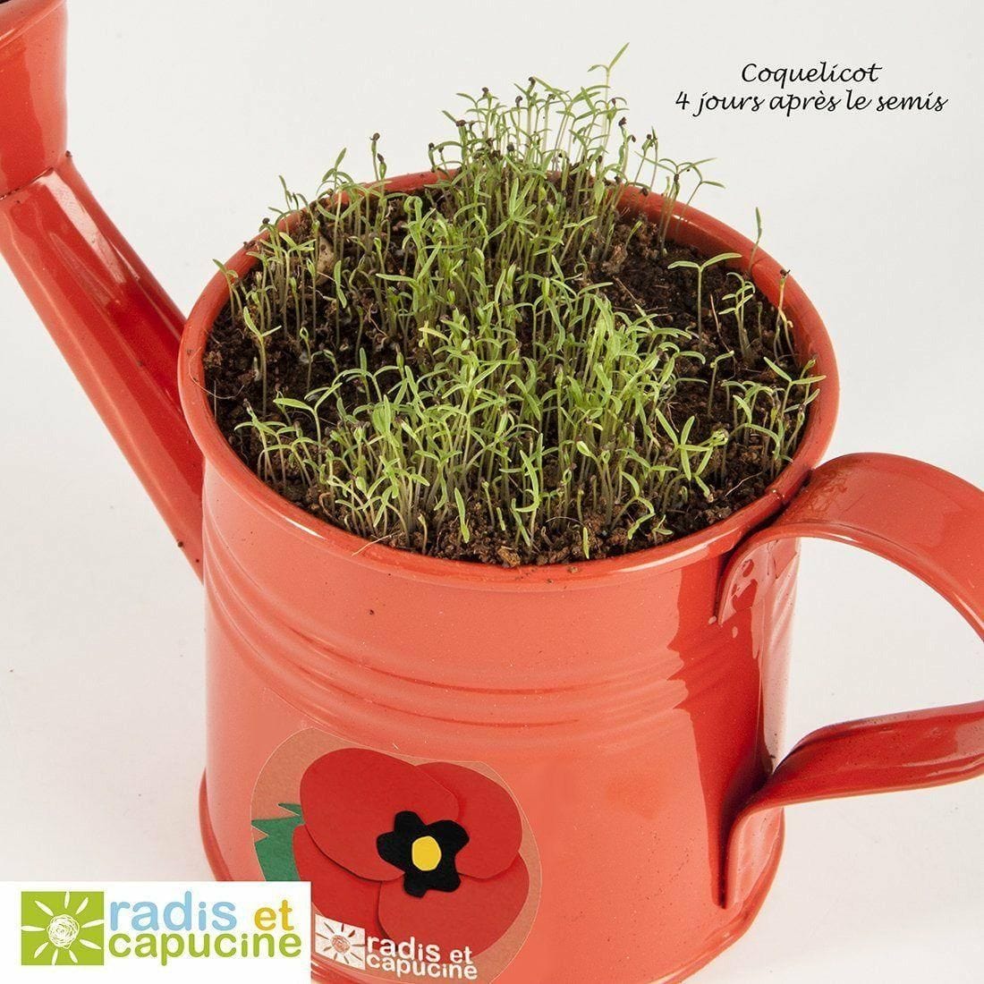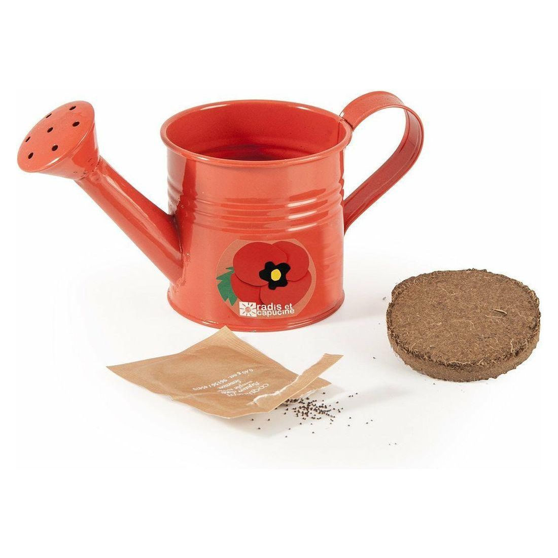 Rote Mini-Gießkanne mit Bio Mohn